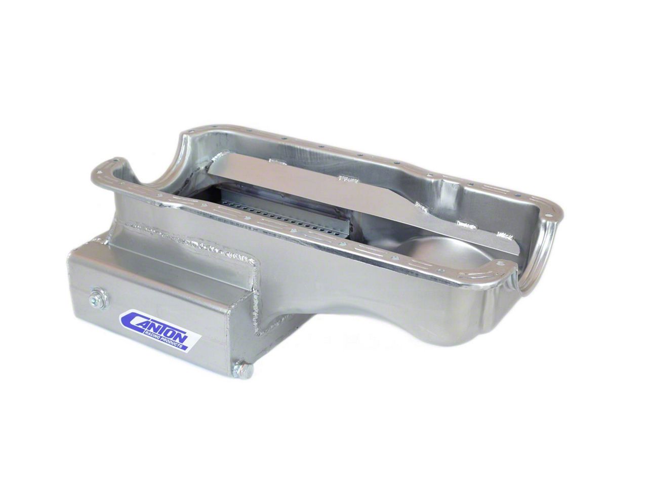 High Performance Road Racing Oil Pan. The Canton 289-302 Road Race Front Sump Oil Pan; Zinc Plated is engineered to provide superior oil control and capacity for Ford 289 and 302 engine blocks. It is designed to maintain reliable oil pickup under high G-force racing conditions, ensuring consistent lubrication and engine protection during aggressive driving.