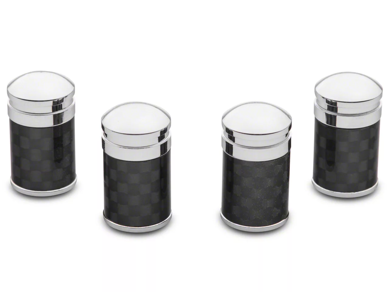 Application. These Carbon Fiber caps fit all standard valve stems (Schrader Valve) so you can use them on your Mustang, on your tow vehicle, or even your bike! Sold as a set of four caps.