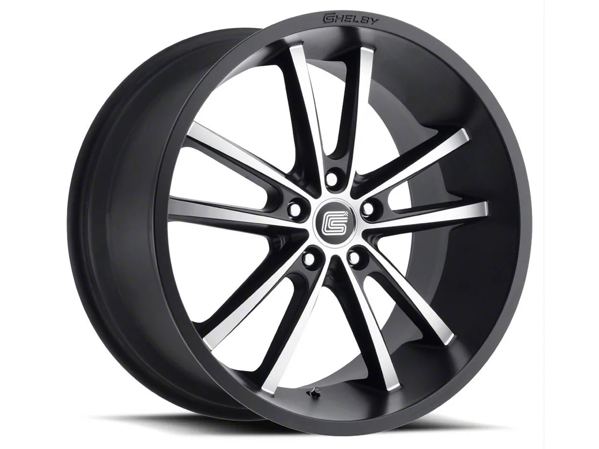 Machined Face With Black Inserts. The velvet smooth look of the machined aluminum face makes for an intense contrast against the black inlays on this Shelby Wheel for an incredibly sharp presentation. These machined wheels feature a clear-coat finish to protect against the hazards of road chips and pitting, for many years of head-turning enjoyment.