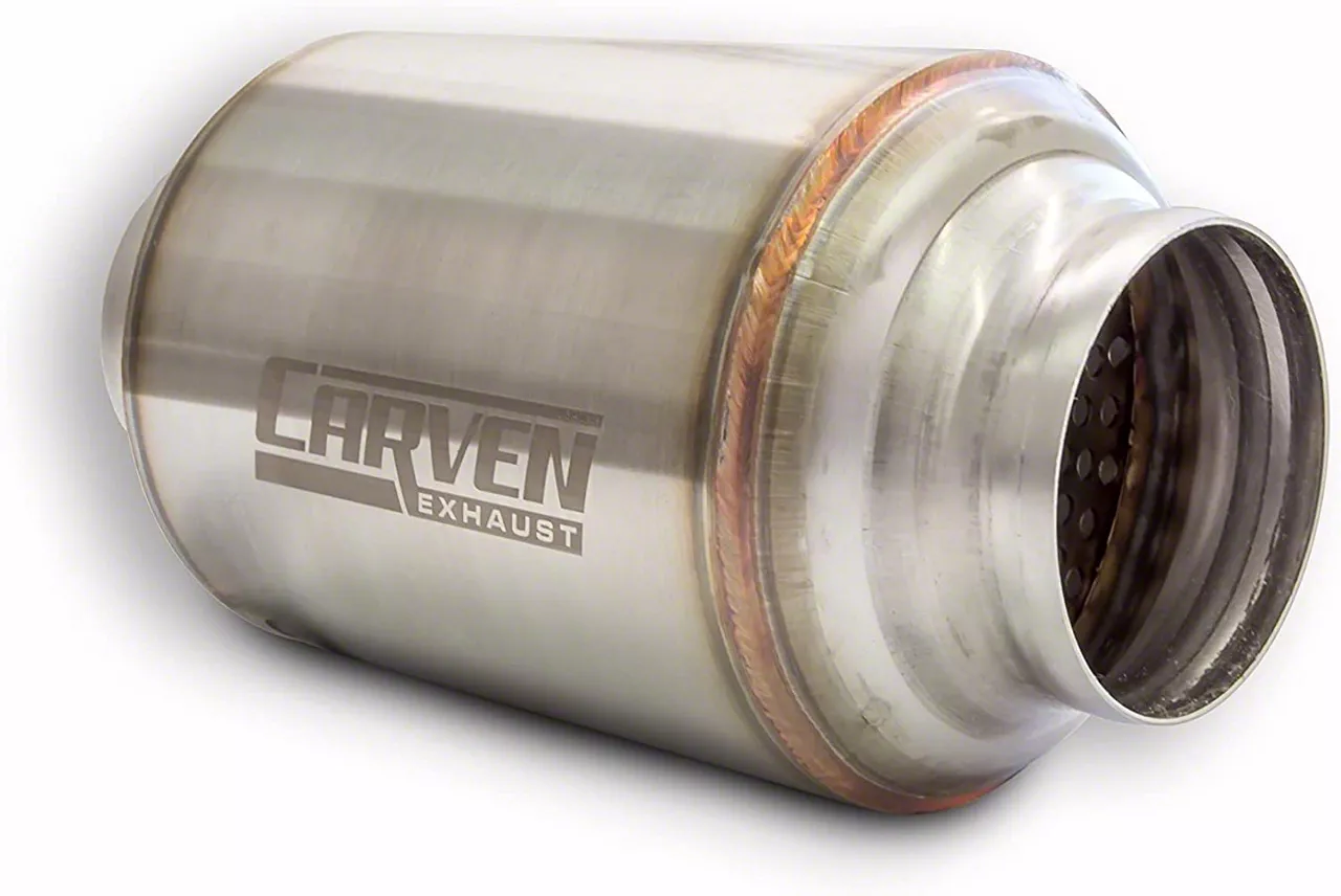 Optimized Exhaust Sound. Increase outflow in your vehicle and drive with a stronger growl with this Carven Exhaust R-Performance Muffler; 3-Inch Inlet /3-Inch Outlet. Sporting a bold structure, it offers greater sound and reduced drone as well as complimenting the looks of your ride with an ample aggressive tone.