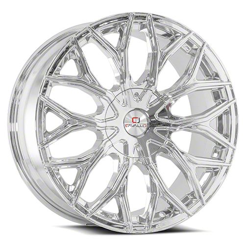 This 24x9 Cavallo CLV-37 Nano Chrome Wheel; Rear Only; 24x9; 18mm Offset is completed in a high-quality chrome finish that will make everyone take notice. Using a 3-stage process involving copper, nickel and chrome, you get a sensational bright wheel that can withstand the rigors of daily driving.