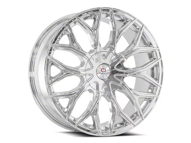 This 26x9.5 Cavallo CLV-37 Chrome Wheel; Rear Only; 26x9.5; 18mm Offset is completed in a high-quality chrome finish that will make everyone take notice. Using a 3-stage process involving copper, nickel and chrome, you get a sensational bright wheel that can withstand the rigors of daily driving.