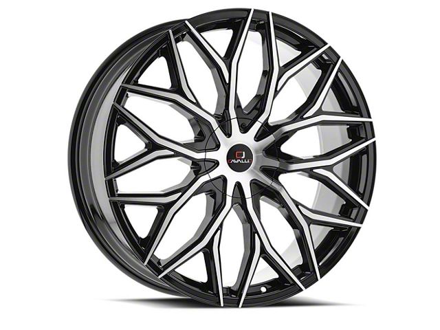 This 26x9.5 Cavallo CLV-37 Gloss Black and Machined Wheel; Rear Only; 26x9.5; 18mm Offset is completed in a high-quality gloss black finish with steel machined accents that will make everyone take notice. For added looks and strength, the wheel features a durable clear coat that withstands the rigors of daily driving.