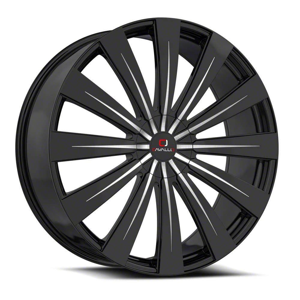 Cavallo CLV-49 Gloss Black and Machined Wheel; Rear Only; 24x9; 18mm Offset is a visually striking choice, offering a combination of rugged durability and modern styling. Its design complements off-road and sporty vehicles alike, enhancing the overall aesthetic appeal.