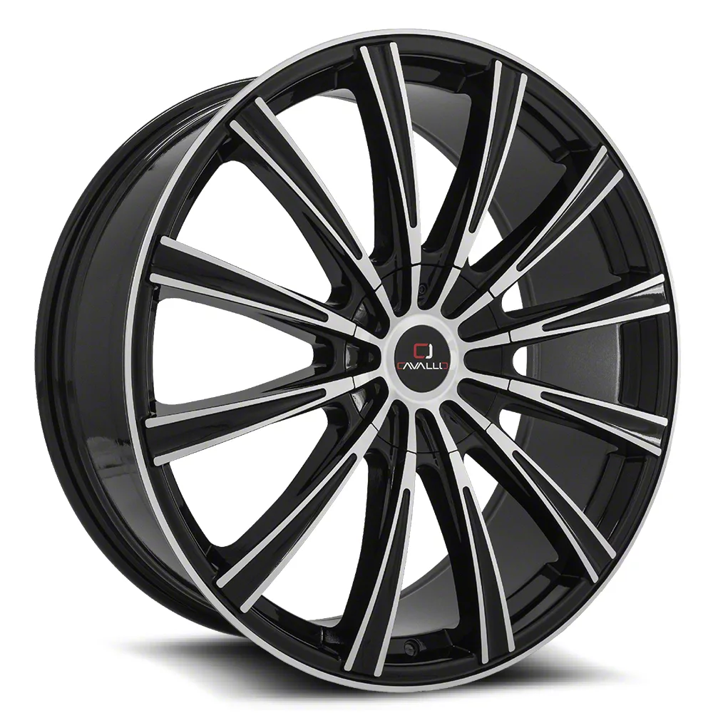 This 20x8.5 Cavallo CLV-23 Gloss Black and Machined 5-Lug Wheel; 20x8.5; 35mm Offset is completed in a high-quality gloss black finish with steel machined accents that will make everyone take notice. For added looks and strength, the wheel features a durable clear coat that withstands the rigors of daily driving.