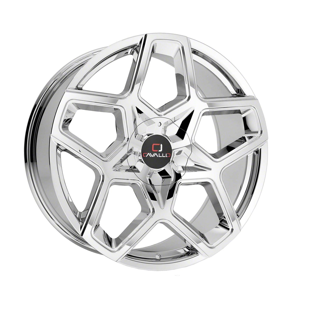 Cavallo CLV-25 Nano Chrome 5-Lug Wheel; 22x8.5; 38mm Offset is a visually striking choice, offering a combination of rugged durability and modern styling. Its design complements off-road and sporty vehicles alike, enhancing the overall aesthetic appeal.