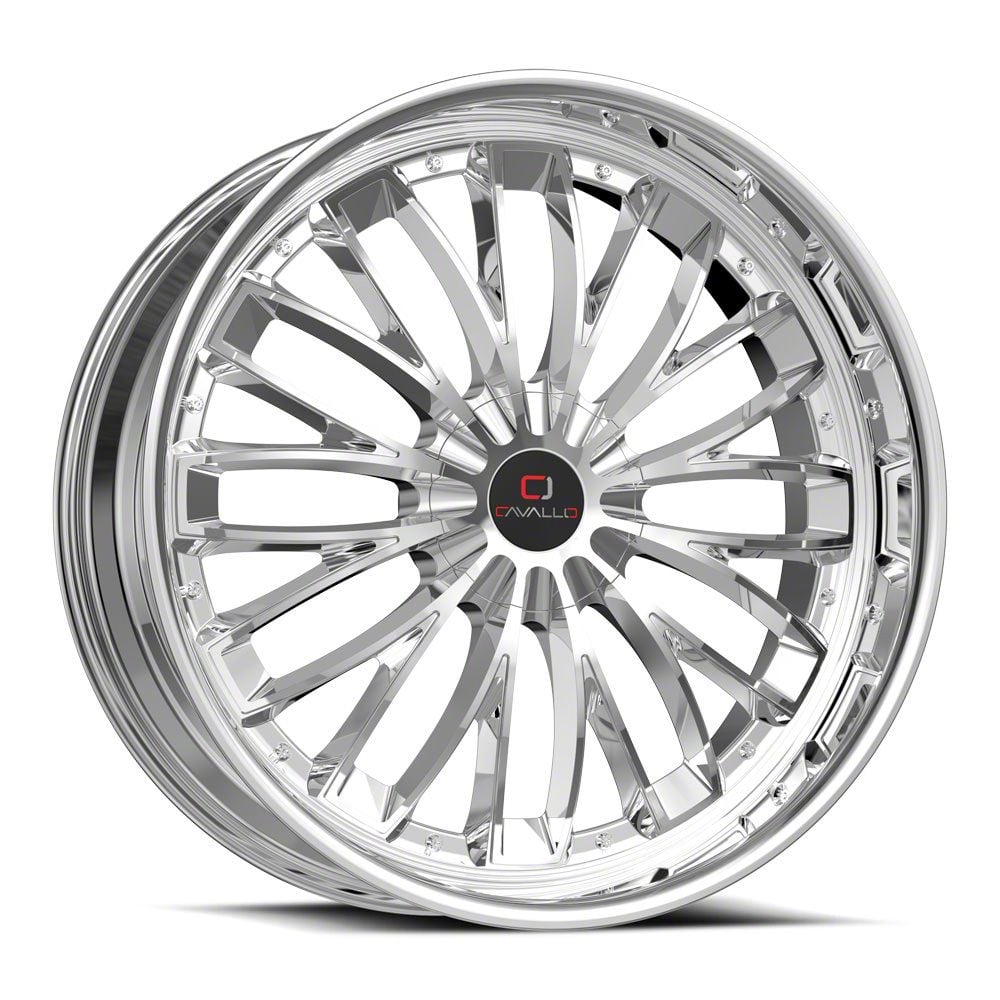 This 22x8.5 Cavallo CLV-42 Nano Chrome 5-Lug Wheel; 22x8.5; 38mm Offset is completed in a high-quality chrome finish that will make everyone take notice. Using a 3-stage process involving copper, nickel and chrome, you get a sensational bright wheel that can withstand the rigors of daily driving.