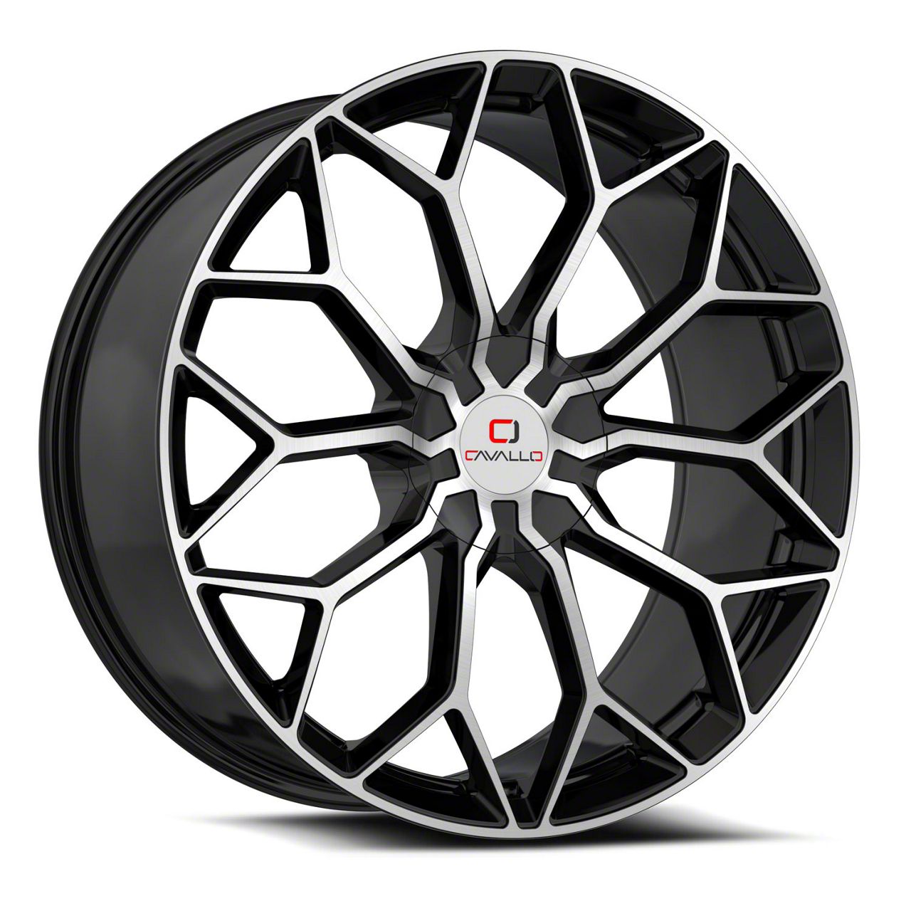 Cavallo CLV-44 Gloss Black and Machined 5-Lug Wheel; 18x8; 35mm Offset is a visually striking choice, offering a combination of rugged durability and modern styling. Its design complements off-road and sporty vehicles alike, enhancing the overall aesthetic appeal.