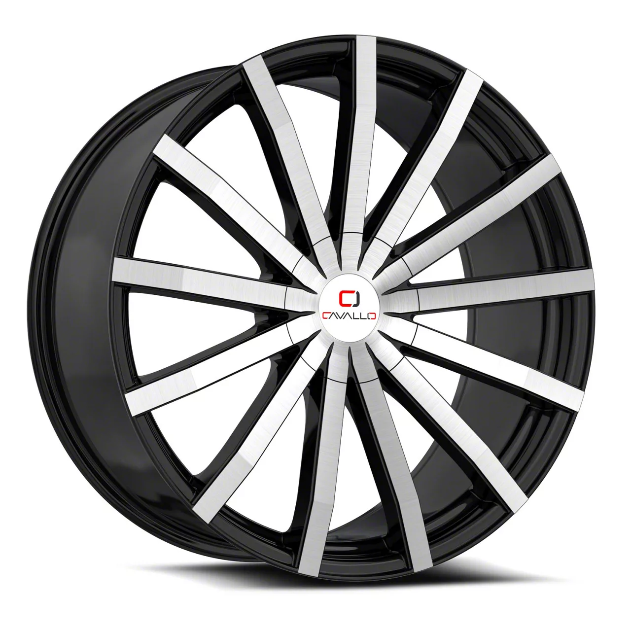 This 20x8.5 Cavallo CLV-52 Gloss Black and Machined 5-Lug Wheel; 20x8.5; 35mm Offset is completed in a high-quality gloss black finish with steel machined accents that will make everyone take notice. For added looks and strength, the wheel features a durable clear coat that withstands the rigors of daily driving.