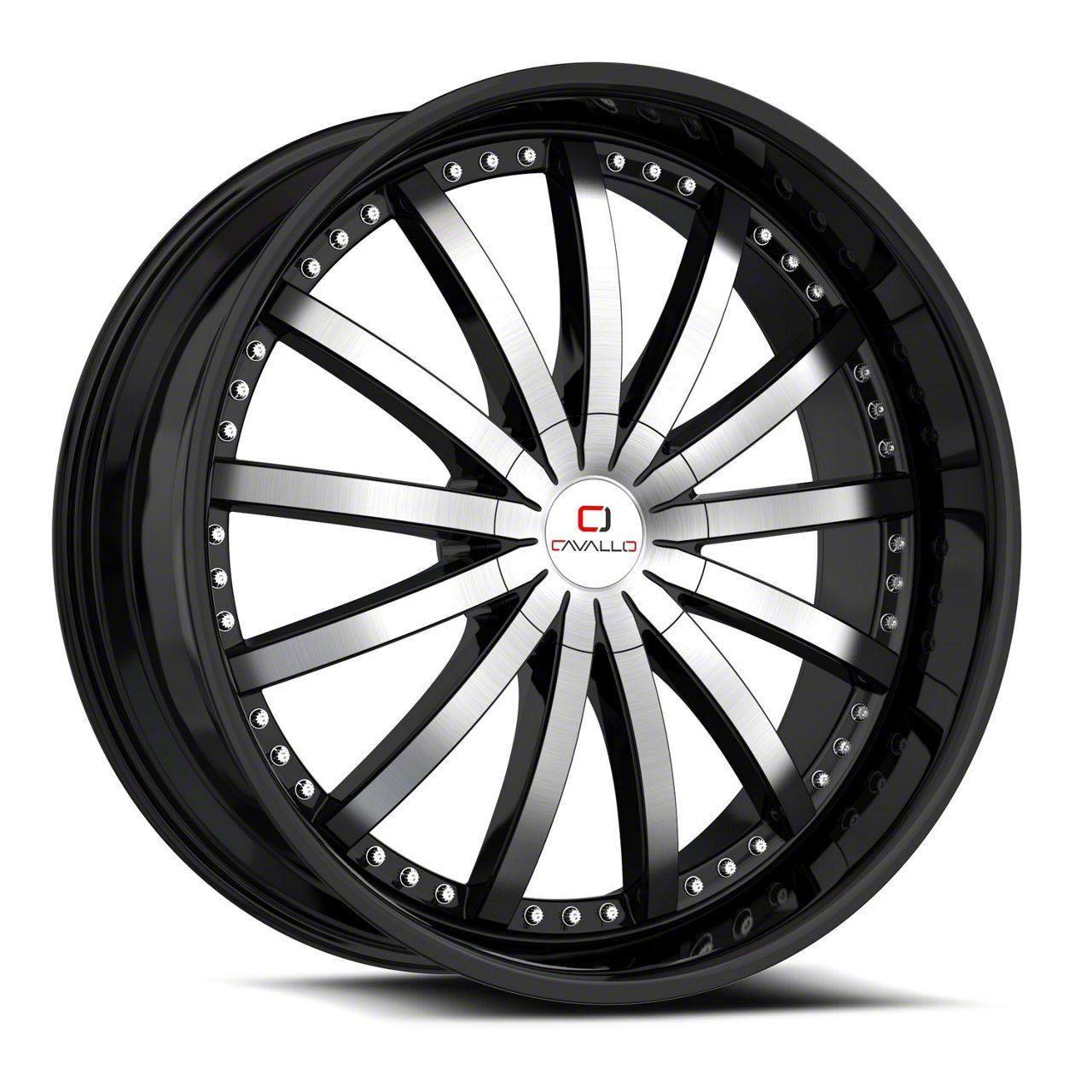 This 20x8.5 Cavallo CLV-53 Gloss Black and Machined 5-Lug Wheel; 20x8.5; 35mm Offset is completed in a high-quality gloss black finish with steel machined accents that will make everyone take notice. For added looks and strength, the wheel features a durable clear coat that withstands the rigors of daily driving.
