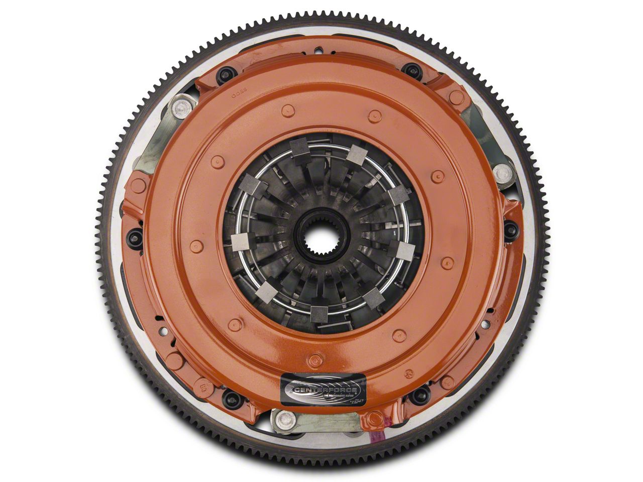 Steel Flywheel. The included Centerforce Flywheel was CAD/CAM-designed for excellence and precision CNC machined to strict tolerances from Billet Steel. This 10.5" Centerforce Mustang flywheel features a ring gear of 164 teeth and a eight bolt main pattern.
