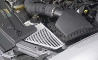 Step 9: Mount the Billet Aluminum Grate on the top of the Ram Air Box and secure it with the supplied small hex screws as shown in Fig H.