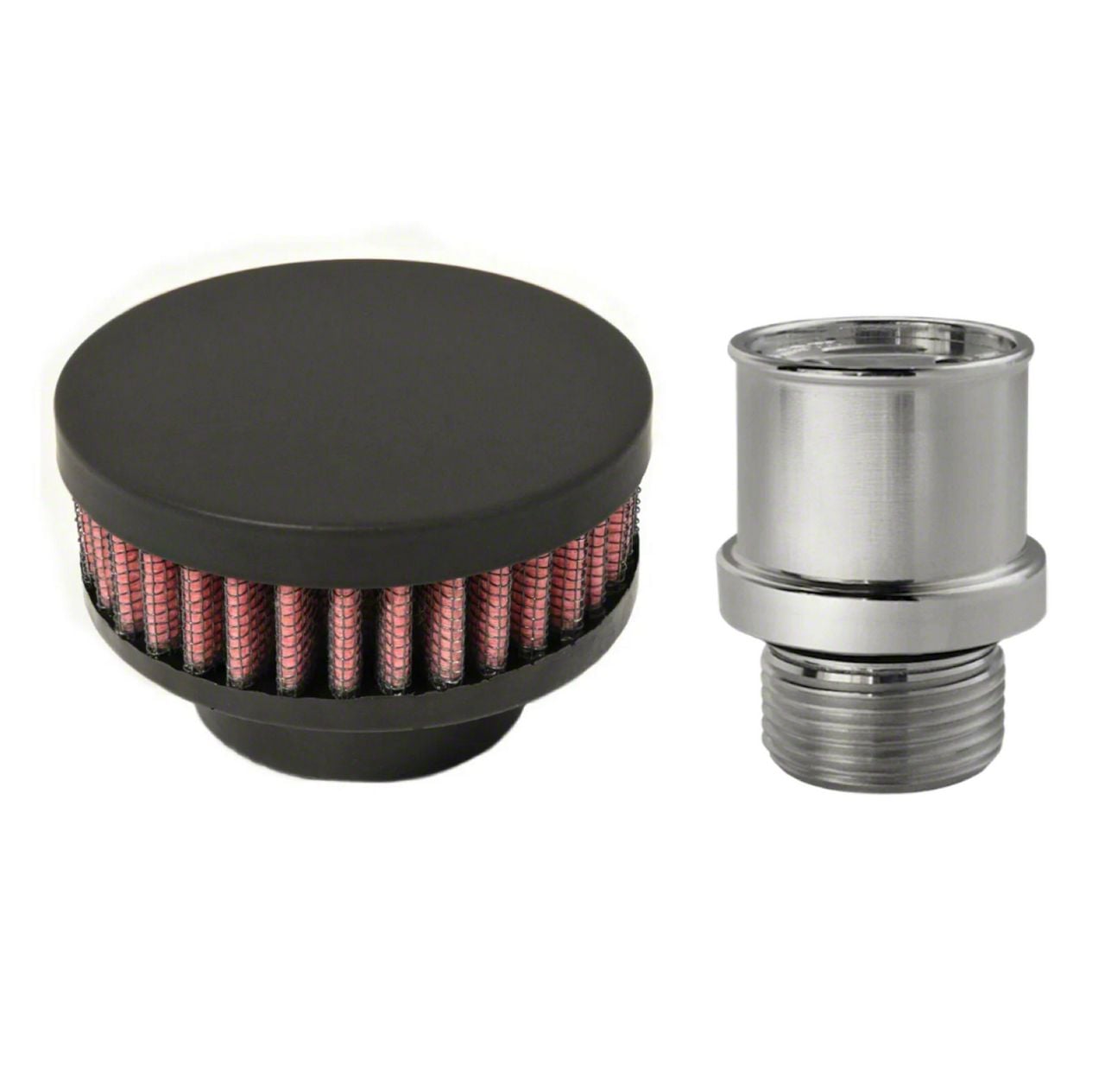 Construction and Appearance. This breather features a durable construction with an integrated stainless mesh and disc baffle system, all encased in a sleek gloss black finish that enhances any engine compartment.