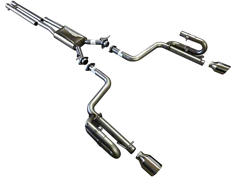 Brawny Build Quality. This cat-back exhaust is made from high-quality, 3-inch wide tubular stainless steel, offering superior durability and excellent corrosion resistance. Additionally, these stainless steel tubes are mandrel-bent to get rid of any performance-killing turbulence from being created along its inner structure. The included muffler is similarly machine-formed and expertly welded for extra strength and consistent performance. Finally, this cat-back comes with slant-cut, dual-walled, 4.50-inch polished stainless steel exhaust tips, providing a classy look.