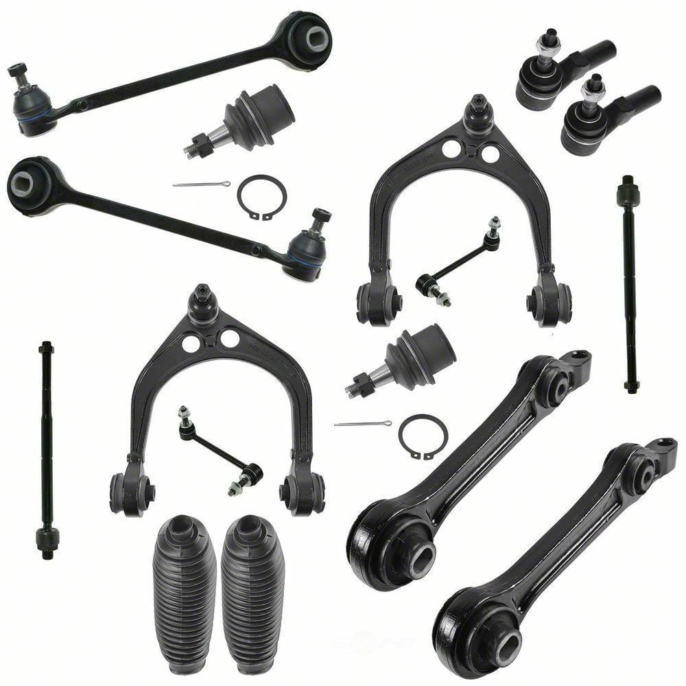 Improved Stability. Invest in the 16-Piece Steering and Suspension Kit and enjoy a safer, more comfortable ride. This comprehensive kit includes all the necessary components to restore your car's steering and suspension to its optimal condition. The kit includes 16 high-quality parts, including ball joints, tie rod ends, sway bar links, control arm and bushings, and more. These parts are made from durable materials and built to withstand tough road conditions and constant use, ensuring a long-lasting solution to your steering and suspension problems.