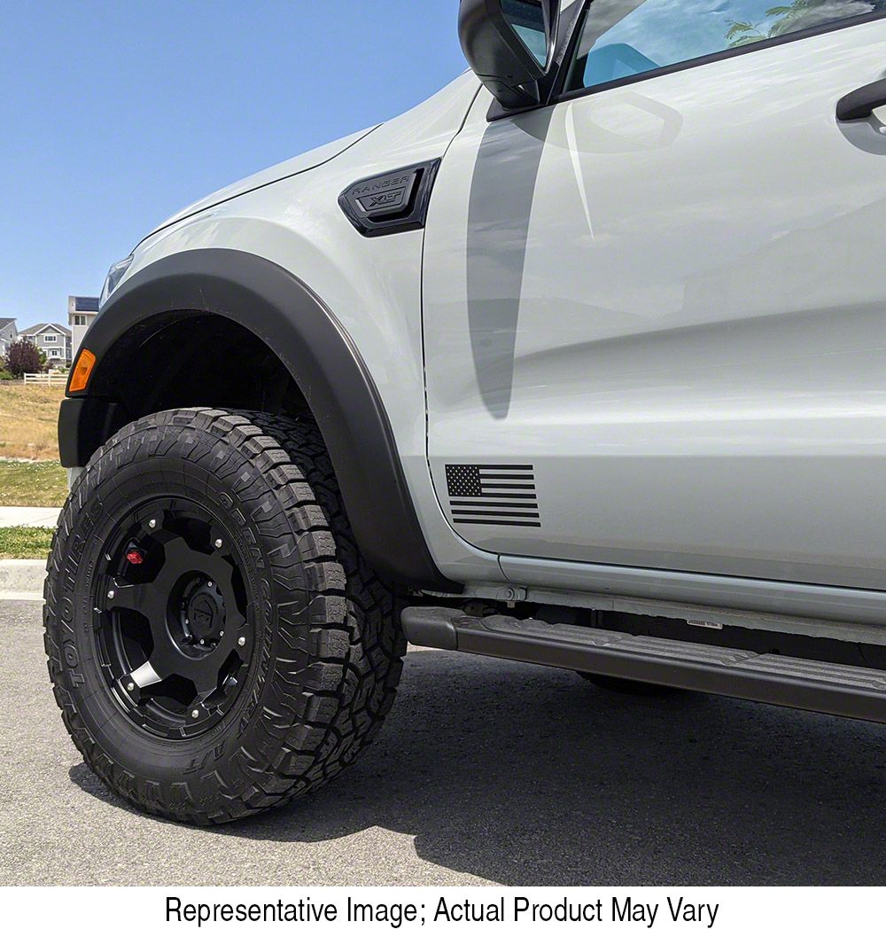 For the Love of the Flag. The American Flag Side Decals in Carbon Fiber are a great way to show off your patriotism and love for your country while adding a personalized touch to your vehicle. This driver-side decal features the American flag in black and white, with a carbon fiber finish that gives a sleek and stylish look.