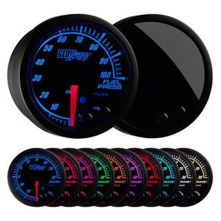 GlowShift’s Elite 10 Color Series 100 PSI Fuel Pressure Gauge includes some high performance features, and allows you to closely monitor your vehicle’s fuel pressure, ensuring it is not running too low which could result in damage to your fuel pump, injectors, resulting in an overall loss of horsepower. This fuel pressure gauge reads from 0 to 100 PSI, and the included electronic fuel pressure sensor reads and displays your vehicle’s fuel pressure with supreme accuracy.