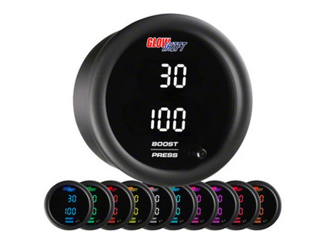 Application. This Digital Dual Boost/Vacuum and Pressure Gauge (Black 10 Color) fits a universal range of vehicles.