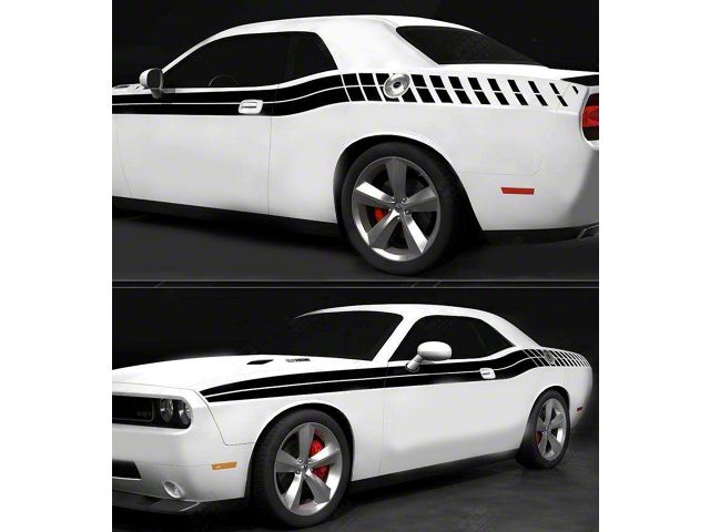 Application. This Double Side and Strobe Stripes; Gloss Black fits all 2011-2014 Challenger models.