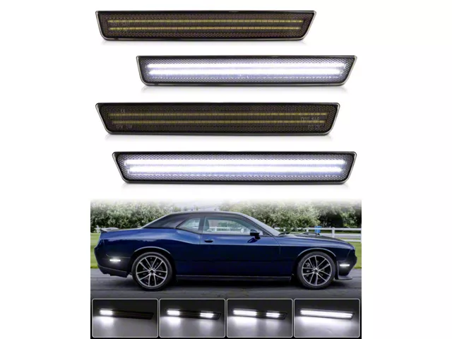 Enhance the bold, aggressive styling of your 2015-2023 Dodge Challenger Slimbody with Front/Rear Dynamic Smoked LED Side Markers. Featuring sequential LED technology, high-intensity illumination, and a sleek smoked lens, these side markers offer both style and functionality in one sleek package.