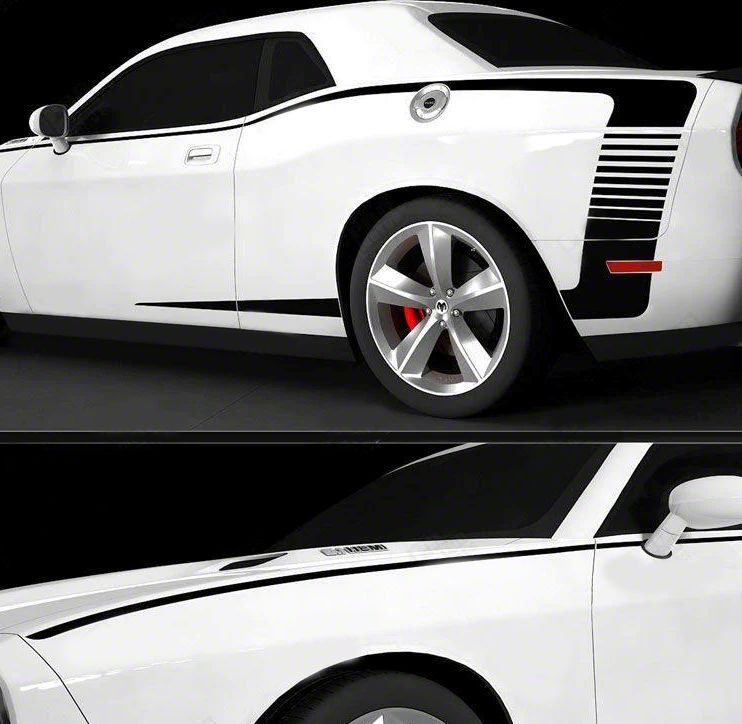 Sleek, Gloss Black Design. Embrace the epitome of sophistication with these gloss black Extended Side C-Stripes Strobe Decals, which offer a sleek and timeless look that complements any color scheme. These stripes not only enhance the visual appeal of your Challenger but also add a layer of distinction that catches every onlooker's eye.