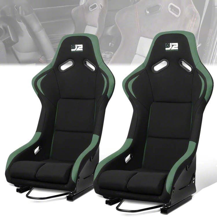 Construction and Appearance. Crafted from a combination of robust Fabric, steel frames, and PVC leather wear sections, these seats offer a blend of durability and style. The sturdy construction ensures resistance to wear and tear, while the Black/Green color Feature adds a luxurious look to any vehicle interior. The seats are developed with shoulder and lower back support, providing comfort during long drives and intense driving conditions. Manufactured to meet industry-leading quality standards, these seats are designed for reliability and performance.