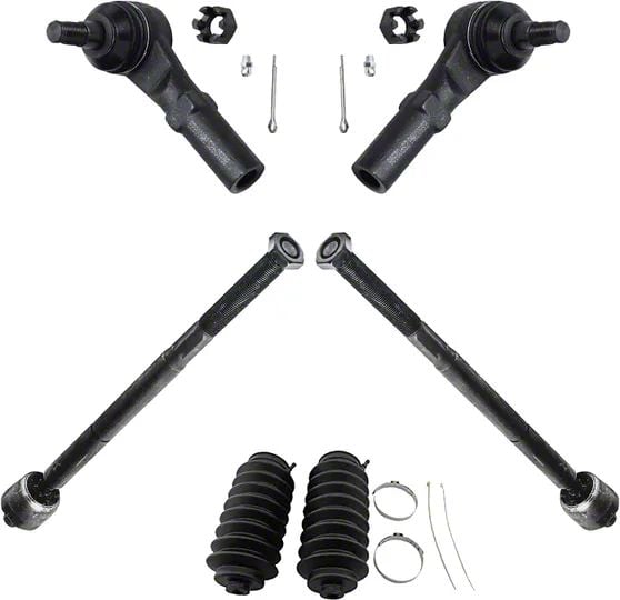 Precision Steering and Enhanced Vehicle Handling. Upgrade your vehicle's steering system with the comprehensive Front Inner and Outer Tie Rods, complete with durable Tie Rod Boots. These components are essential for maintaining precise steering and response, ensuring a smoother and more controlled driving experience. They play a crucial role in improving overall vehicle handling, reducing tire wear, and preventing alignment issues. This set is an ideal choice for drivers seeking to enhance their vehicle's maneuverability and safety on the road.