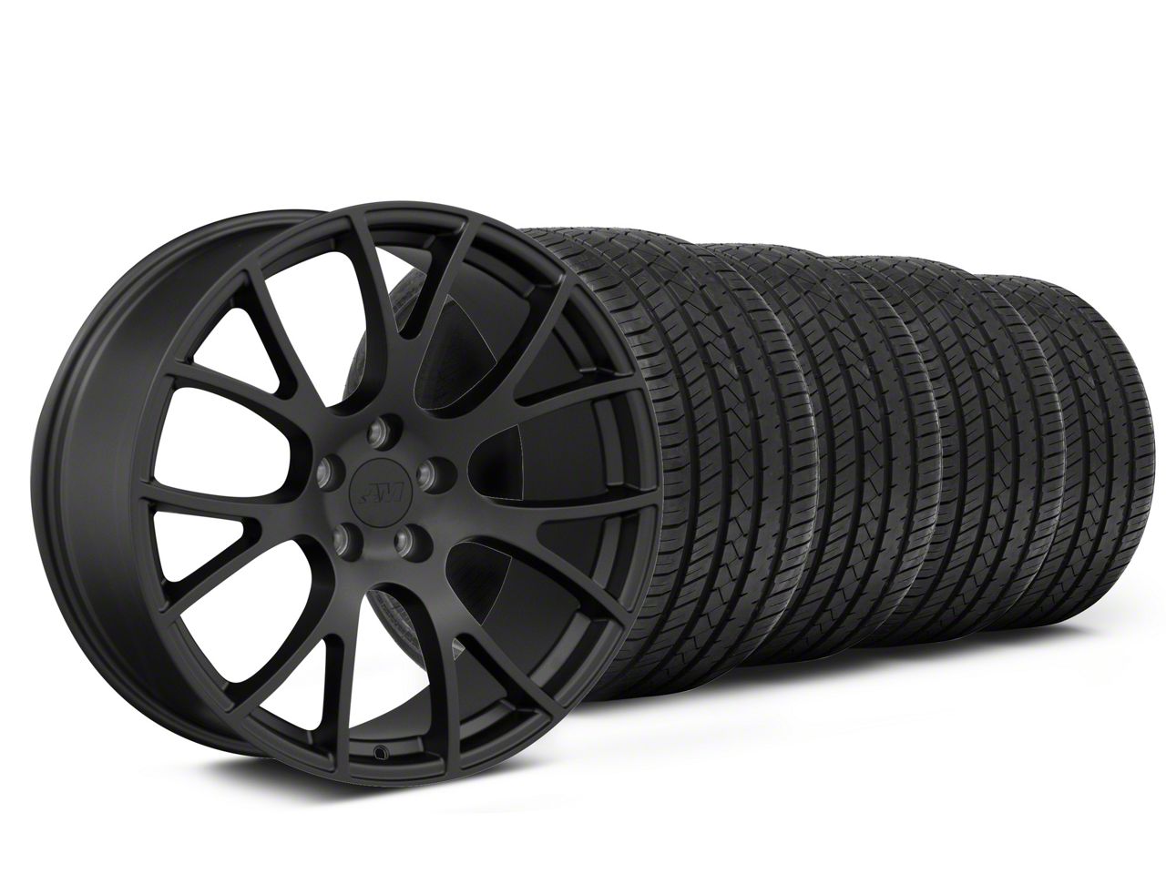 Mounted and Balanced Wheel and Tire Kit. This wheel and tire combo kit features (4) 20x9 Hellcat Style Satin Black Wheels and (4) Lionhart LH-Five Ultra High Performance All-Season 275/40R20 tires that have been put together into an easy to buy kit that arrives to your door already mounted and balanced ready to be installed on your vehicle.