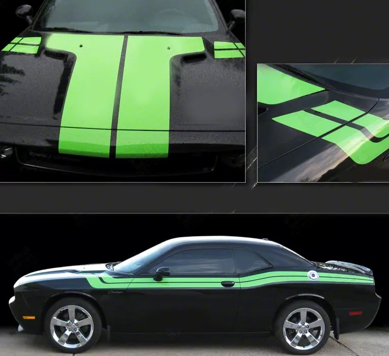 Application. This Hood, Fender and Side Dual Stripes in Gloss Black fits all 2015-2018 Dodge Challenger models.