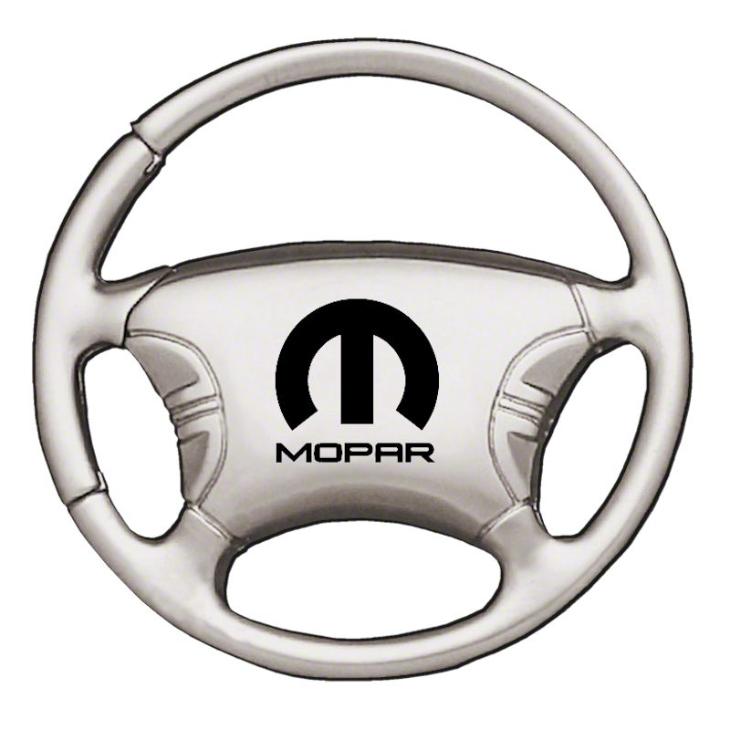 Functional and Classy. Keep the key of your prized vehicle in one stylish keychain with our MOPAR Chrome Steering Wheel Key Fob. This unique key fob is shaped like a steering wheel and features a laser-etched Mopar logo that is guaranteed not to fade. It comes with an elegant black gift box making it an ideal gift for a friend or yourself.