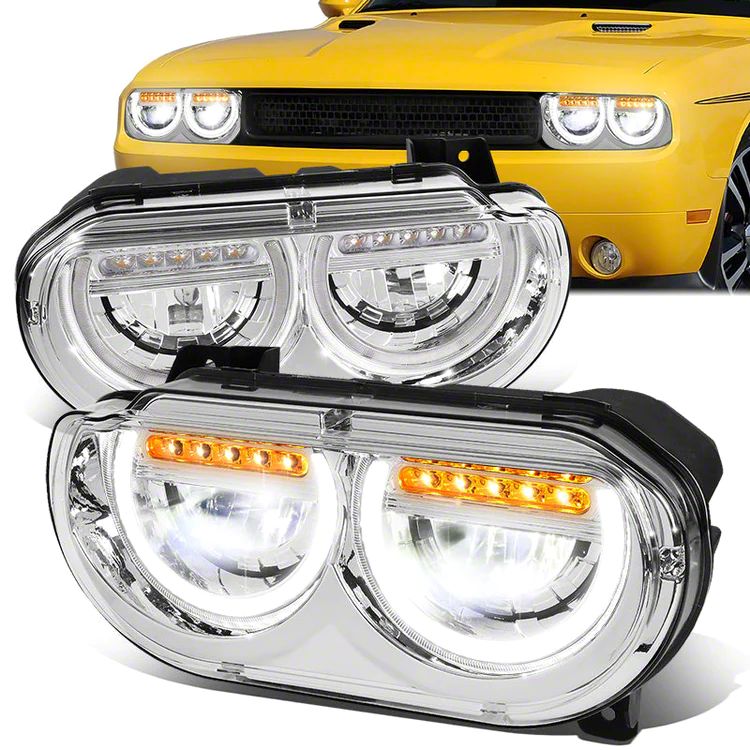 Application. These LED DRL Headlights fit 2008-2014 Dodge Challenger models. They enhance safety with improved illumination while elevating the front-end style of your vehicle with modern, chrome-accented aesthetics.