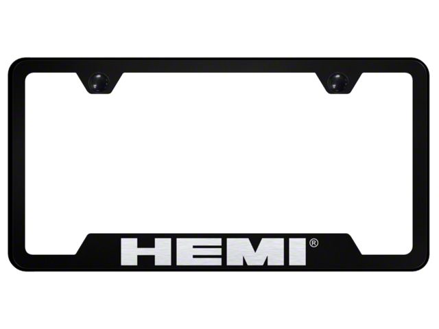 Application. The HEMI Laser Etched Cut-Out License Plate Frame is a product with universal fitment with some adaptation needed.