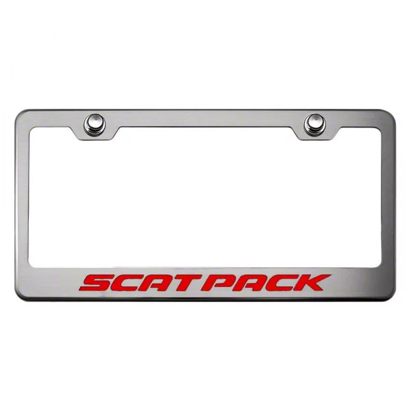 Application. The License Plate Frame with SCAT PACK Lettering offers universal fitment.