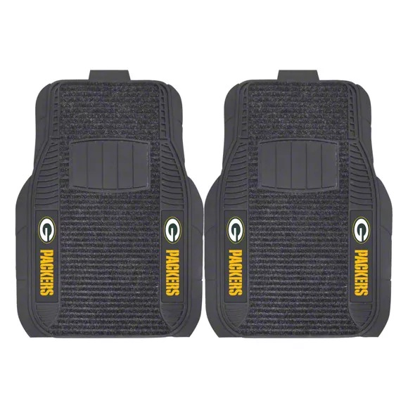 Application. These Molded Front Floor Mats with officially-licensed Green Bay Packers logo feature a universal design so they will fit most makes and models of vehicles. These Mats can be trimmed to fit if necessary. Sold as a set of two Mats.