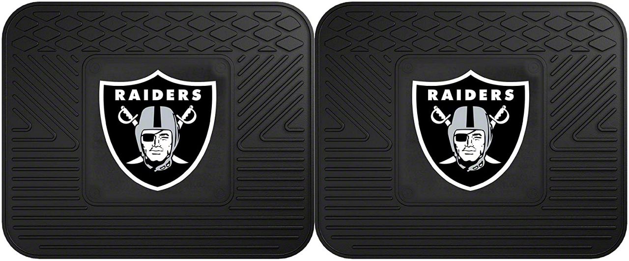 Application. These Molded Rear Floor Mats with officially-licensed Las Vegas Raiders logo feature a universal design so they will fit most makes and models of vehicles. Sold as a set of two Mats.