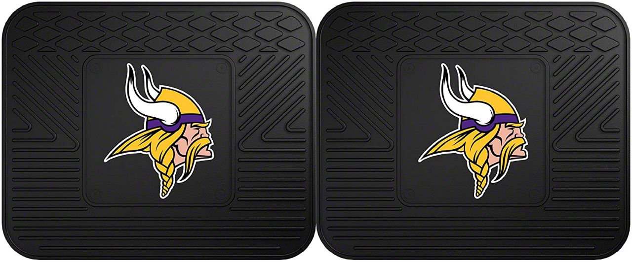 Application. These Molded Rear Floor Mats with officially-licensed Minnesota Vikings logo feature a universal design so they will fit most makes and models of vehicles. Sold as a set of two Mats.