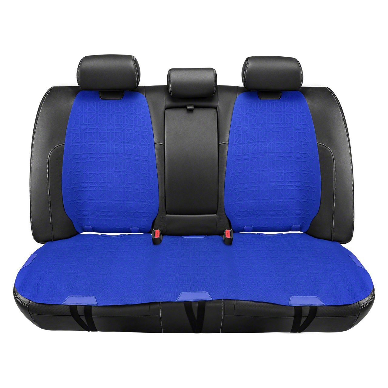 Sporty 2-Tone Styling with Full Coverage Protection. The Protex Plus Series Front and Rear Seat Covers; Blue/Black combine bold blue and black tones for a dynamic, custom look that instantly upgrades your vehicle’s interior. Designed to protect against spills, stains, and daily wear, they offer full coverage for both front and rear seats while adding a splash of personality to your cabin.