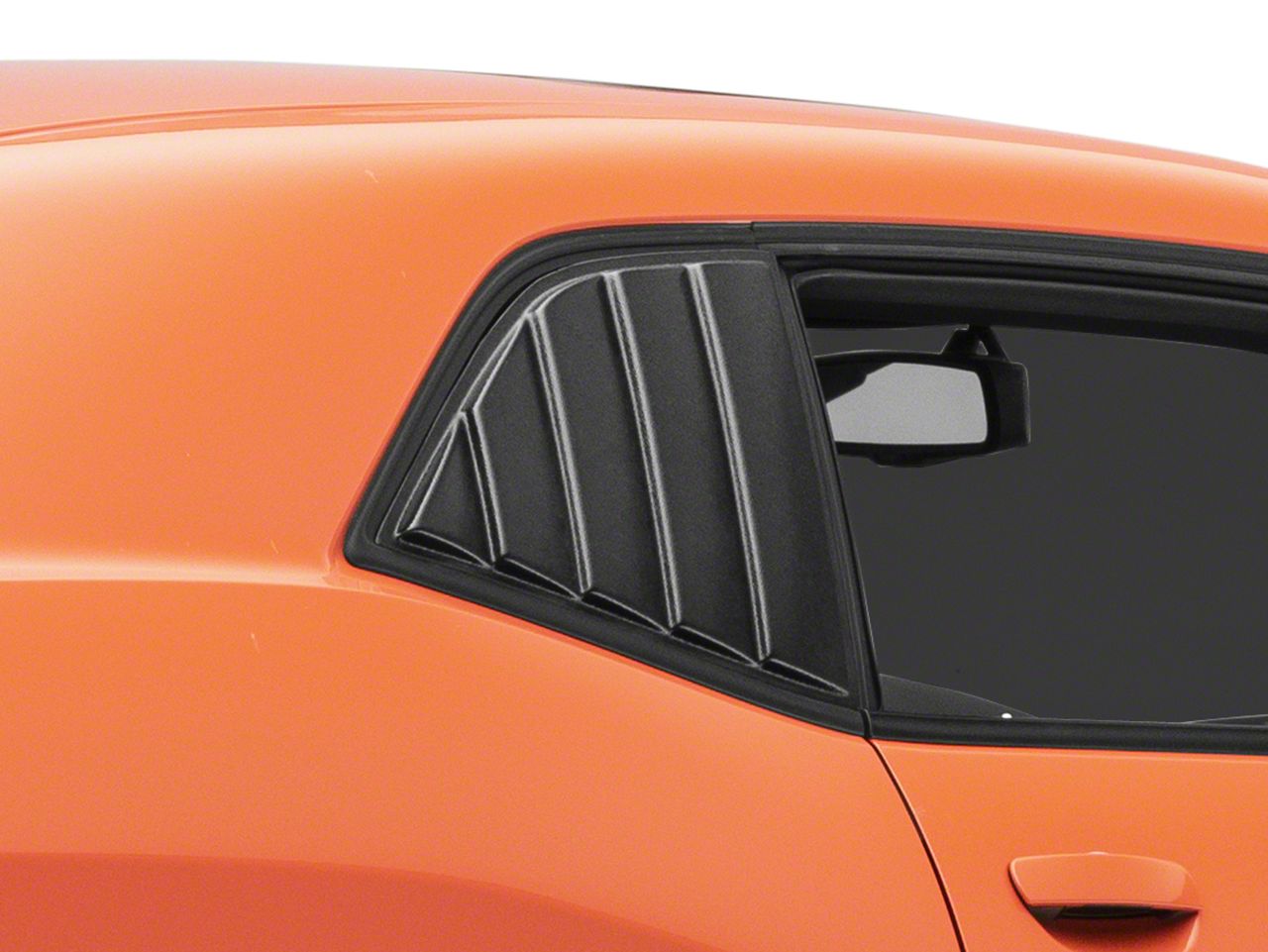 Elegant Boldness. Give your Dodge Challenger a distinctive style with a dynamic appeal by installing the Gloss Black Quarter Window Louvers; Gloss Black. This pair of louvers will give a bold and sharp look to your muscle car’s exterior that stylishly enhances its aggressive stance.