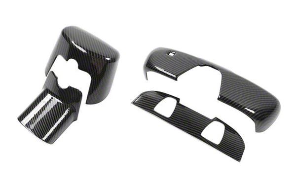 High-Fidelity Carbon Print Finish. This Rear View Mirror Cover; Carbon Print features a high-resolution carbon print surface that closely mimics the depth and weave of true carbon fiber. The glossy finish adds a modern, technical look that catches the light from every angle while blending seamlessly with other factory or aftermarket trim accents. Engineered to resist fading, yellowing, or discoloration from UV exposure and daily wear, the carbon print maintains its premium appearance for the long haul—even under constant sunlight and interior use.