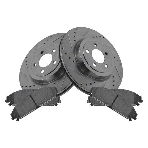 Performance. The Semi-Metallic Performance Brake Rotor and Pad Kit is designed to provide improved braking performance compared to standard factory brake components. The semi-metallic brake pads offer better stopping power and shorter braking distances, enhancing the overall safety of the vehicle.