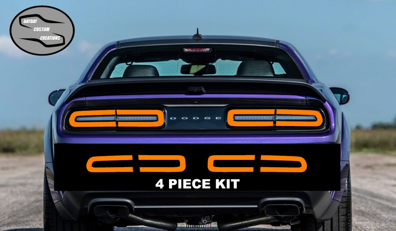 Fiery Transformation. Ignite the rear end of your 2015-2023 Challenger with the captivating Orange Tail Light Tint Overlay. This isn't just a simple accessory; it's a bold statement that transforms your vehicle's appearance, setting it apart from the mundane. The vibrant orange tint adds a touch of aggression and individuality, turning heads and commanding attention. Whether you're cruising down the highway or parked at a car show, your Challenger will exude a sense of power and style.