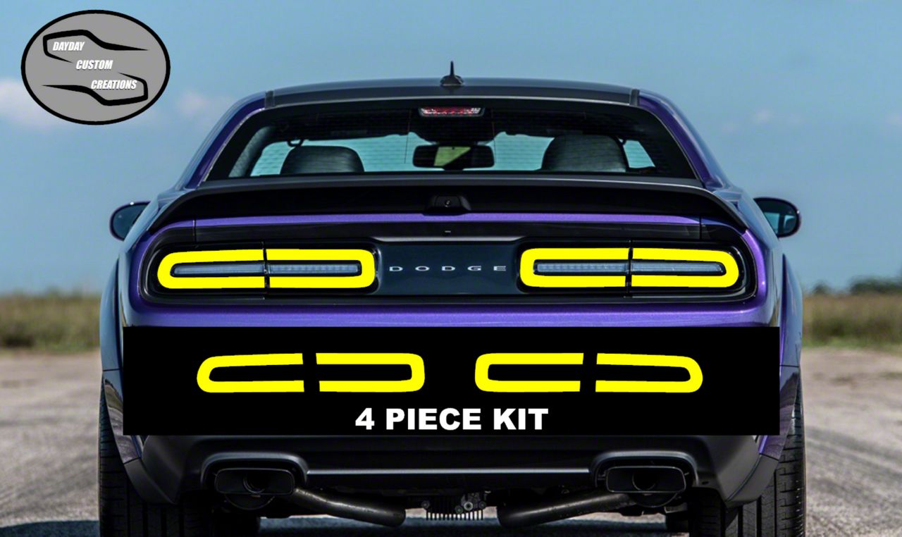 Stylish Taillight Overlay. The Tail Light Tint Overlay is designed to give your Dodge Challenger a bold and unique look while maintaining functionality. It overlays the red parking light, creating a distinctive yellow hue with a 15-20% tint for a custom appearance.