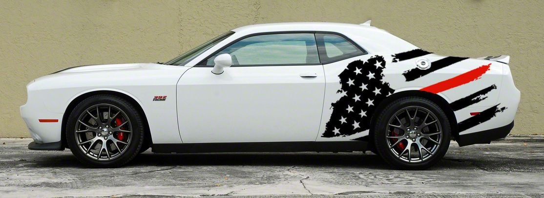Application. The Tattered American Flag Body Graphics in Red fits all 2008-2023 Dodge Challengers.