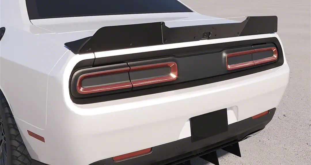 Application. The Solid Aluminum Wicker Bill Add-On with Gurney Flap for Factory Spoiler fits 2015-2023 Challenger R/T, SRT.
