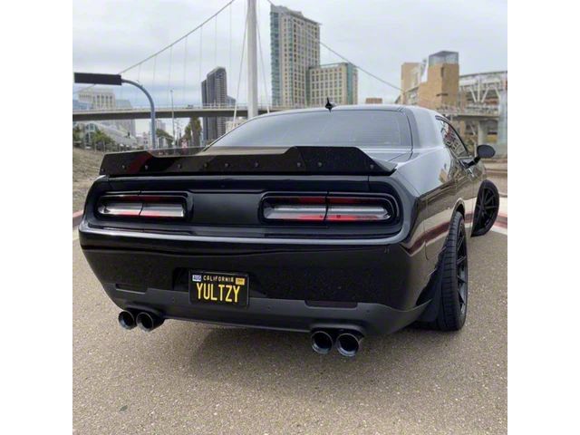 Application. The Wicker Bill with Camera Cutout; Polished fits all 2008-2014 Dodge Challenger models with OEM Spoiler & 2015-2023 Dodge Challenger Scat Pack, SRT & R/T models without Redeye Spoiler.
