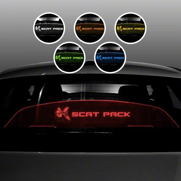 Unique and Stylish. Take the typical rear wind deflector to a whole new level with the Wind Deflector with Scat Pack Logo in Red. This rear wind deflector is custom-made red illuminated glass engraved with the Scat pack logo. It’s installed behind your front seats and the fiber-optic-like lighting systems of this plate give the edge of the glass a soft glow while leaving the remainder of the surface clear and transparent.