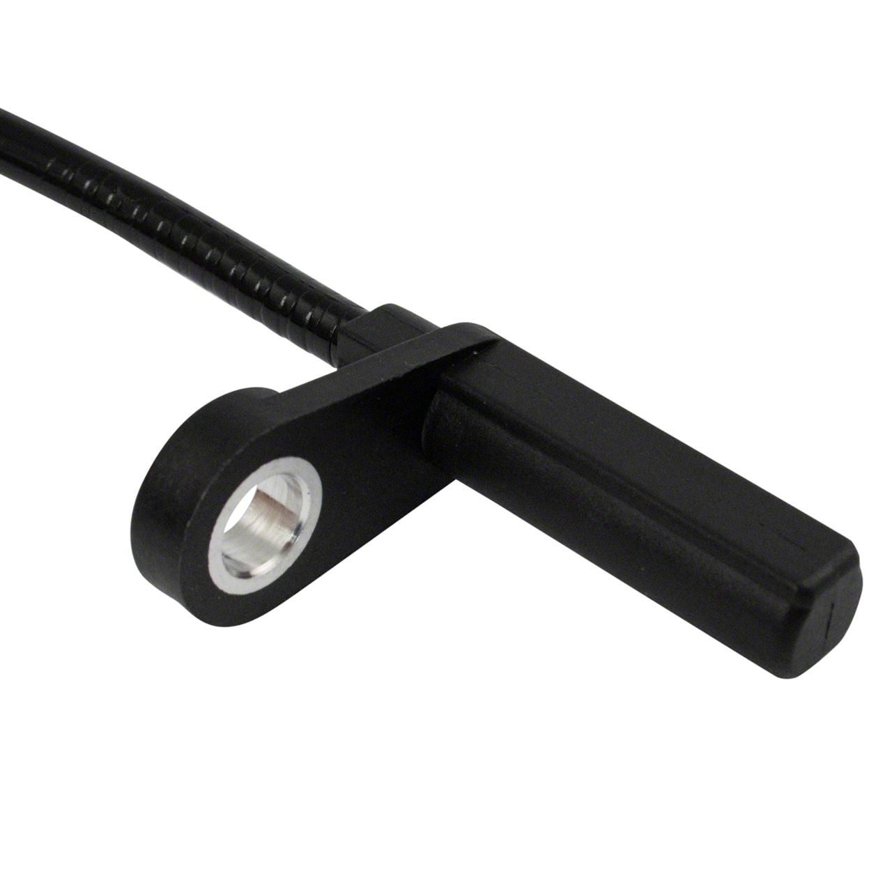 Rear ABS Sensor. The ABS Wheel Speed Sensor on the rear passenger side detects wheel rotational speed to provide crucial data to the anti-lock braking system. This data helps prevent wheel lockup during braking, enhancing vehicle control and safety under various road conditions.