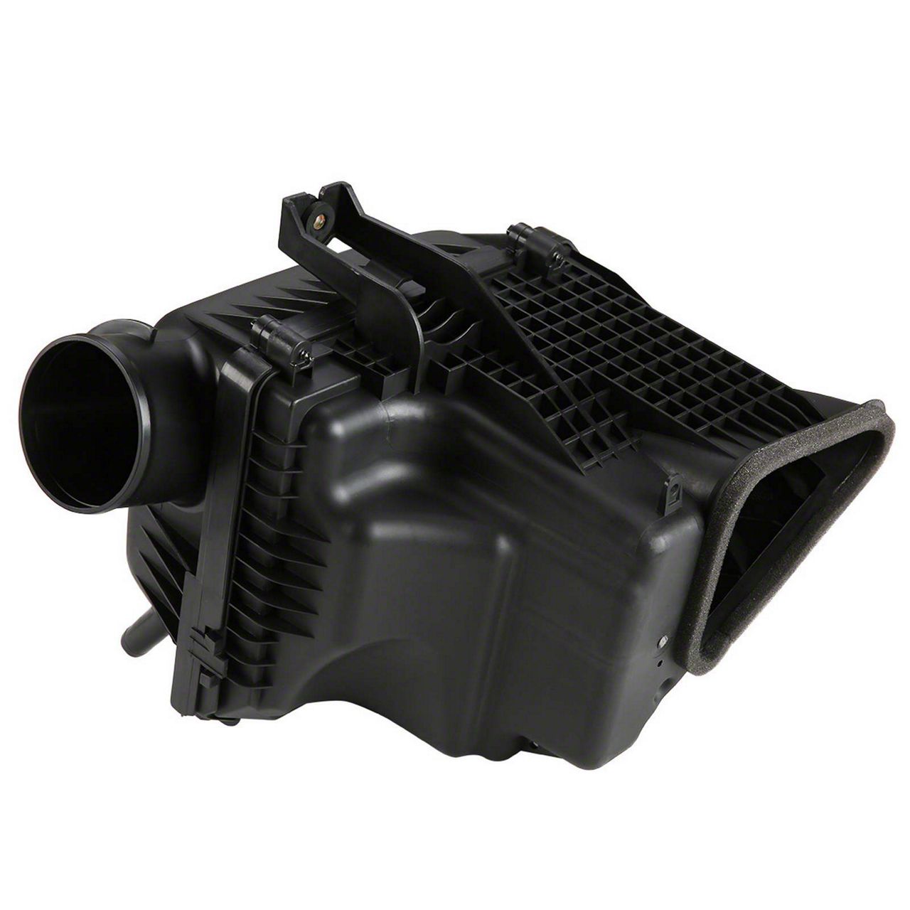 Construction and Appearance. Manufactured from high-quality plastic, this air cleaner intake filter box features a durable and heat-resistant construction. It comes in a black finish that matches original equipment aesthetics, providing a seamless and professional look under the hood.