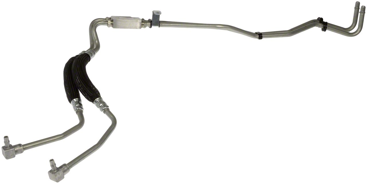 Durable Construction for Long-Lasting Performance. Manufactured using high-quality rubber and metal materials, this hose assembly is built to withstand high temperatures and pressure. The integrated factory-grade bypass valve regulates fluid flow, enhancing overall transmission efficiency. Designed for longevity, this assembly provides reliable operation in all driving conditions.