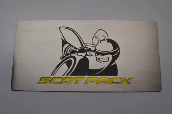 Outstanding Style. For a showstopping look, dress up your car’s fuse box by adding this Brushed Fuse Box Cover Top Plate with Scat Pack Logo for ACC Fuse Box Covers in Black Carbon Fiber. This top plate bears the Scat Pack logo inlay, which is crafted from a black carbon fiber vinyl. Along with this logo is a laser-etched Super Bee design that gives your fuse box a fun and edgy look.